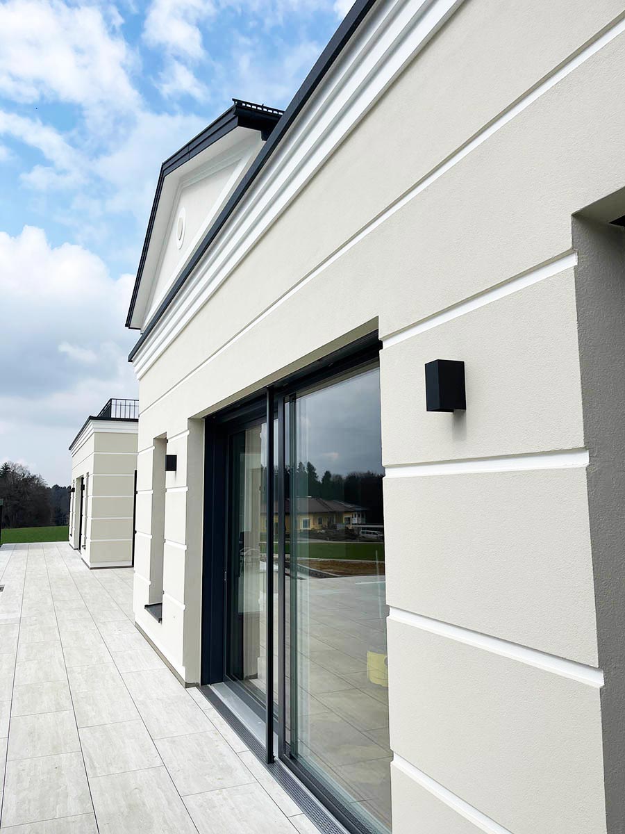 Cornices, pilaster strips, and decorative facade elements from LB Fassadenelemente add extraordinary accents to the visual design of the facade of this villa in Switzerland. All elements were custom-made according to the architect’s specifications and in close consultation with the client.